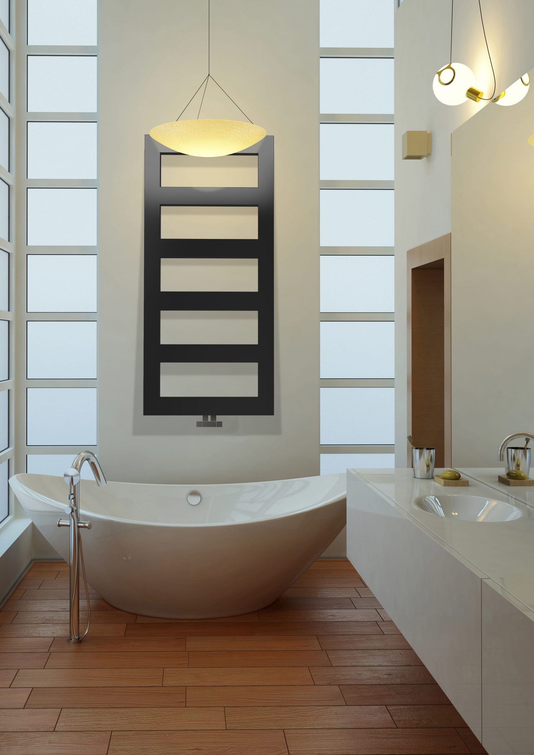 El radiador KAZAR LATER (960X500 Hidráulico): Mucho más que un radiador toallero, es una pieza de diseño que transforma el baño en una declaración de estilo.